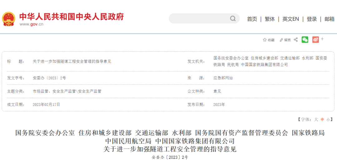 2023年2月,國(guó)務(wù)院安委會(huì)辦公室、住房和城鄉(xiāng)建設(shè)部、交通運(yùn)輸部等8部門(mén)印發(fā)《關(guān)于進(jìn)一步加強(qiáng)隧道工程安全管理的指導(dǎo)意見(jiàn)》,指出隧道施工建設(shè)需加大機(jī)械化、信息化及先進(jìn)技術(shù)推廣應(yīng)用,從而提升工程重大風(fēng)險(xiǎn)防范化解能力。
