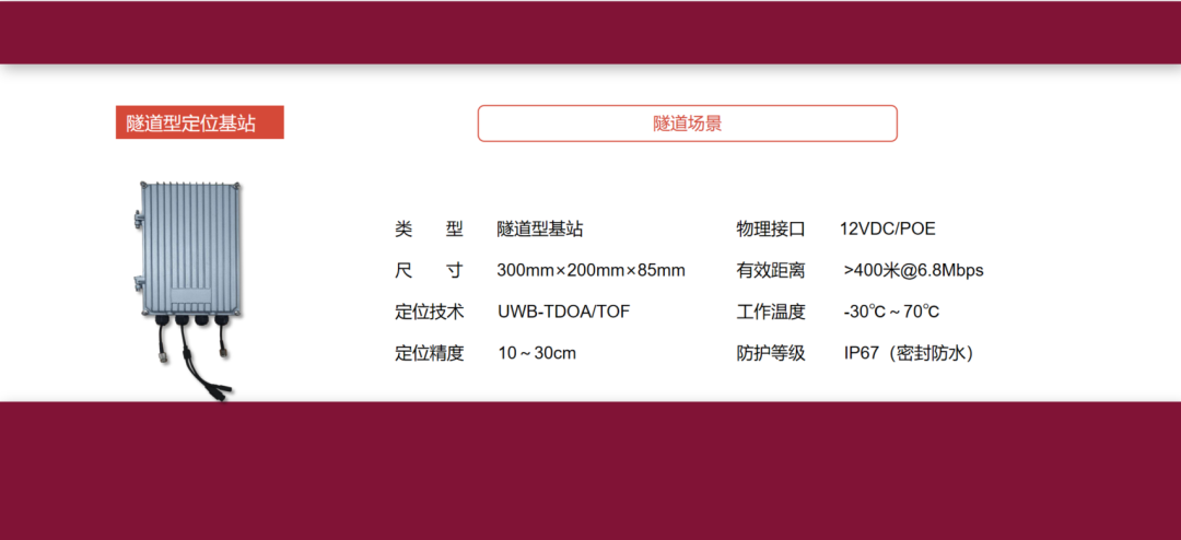 全跡科技UT100-AET隧道專用型定位基站具備業(yè)界領(lǐng)先的性能成本優(yōu)勢(shì),天線優(yōu)化增益結(jié)合全跡科技UWB定位核心算法1維定位信號(hào)覆蓋>400米,IP67高防護(hù)等級(jí)可適用隧洞等復(fù)雜施工環(huán)境。