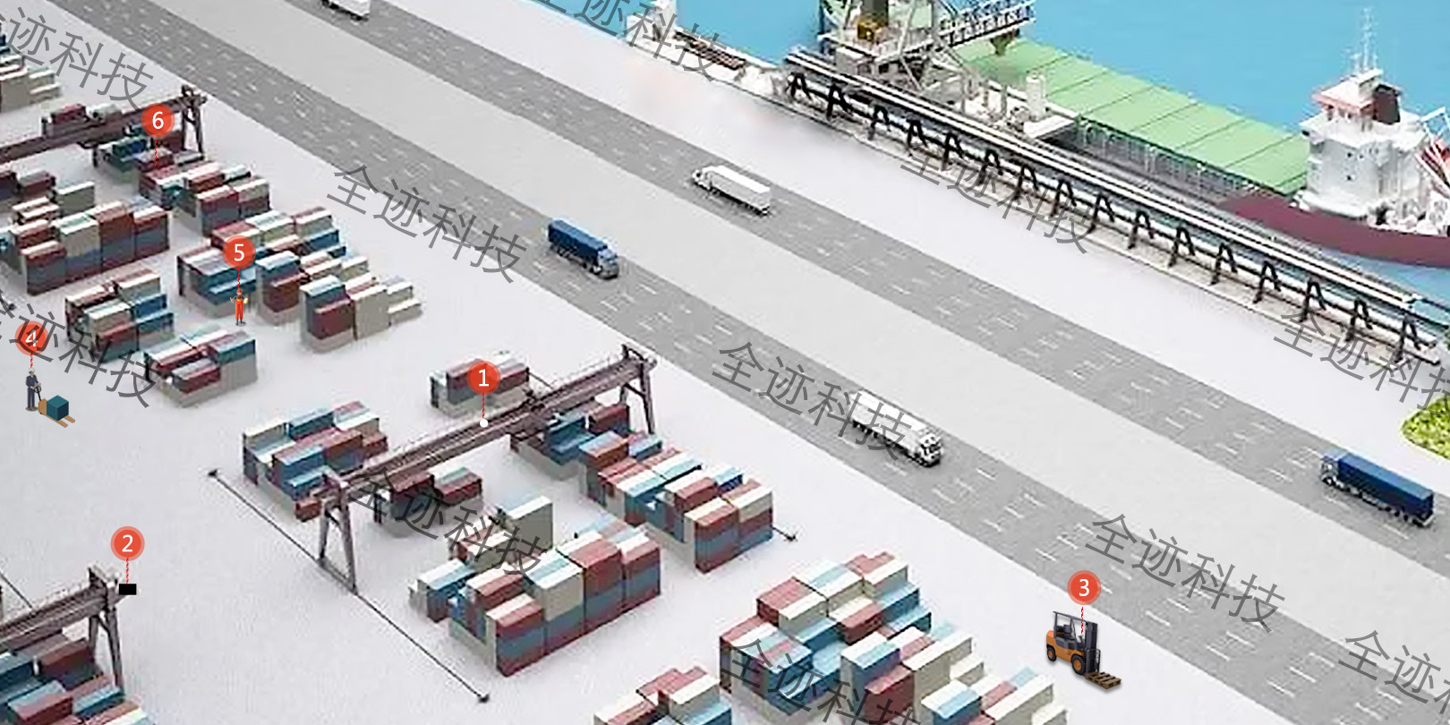 港口碼頭是人、車、貨周轉的關鍵樞紐,常伴隨場地較大、人車穿插作業、室內外工作環境并存等情況。全跡UWB+RTK高精度定位可實現室內外全方位人/車/物定位感知,賦能企業實時監控、快速響應、動態感知能力。