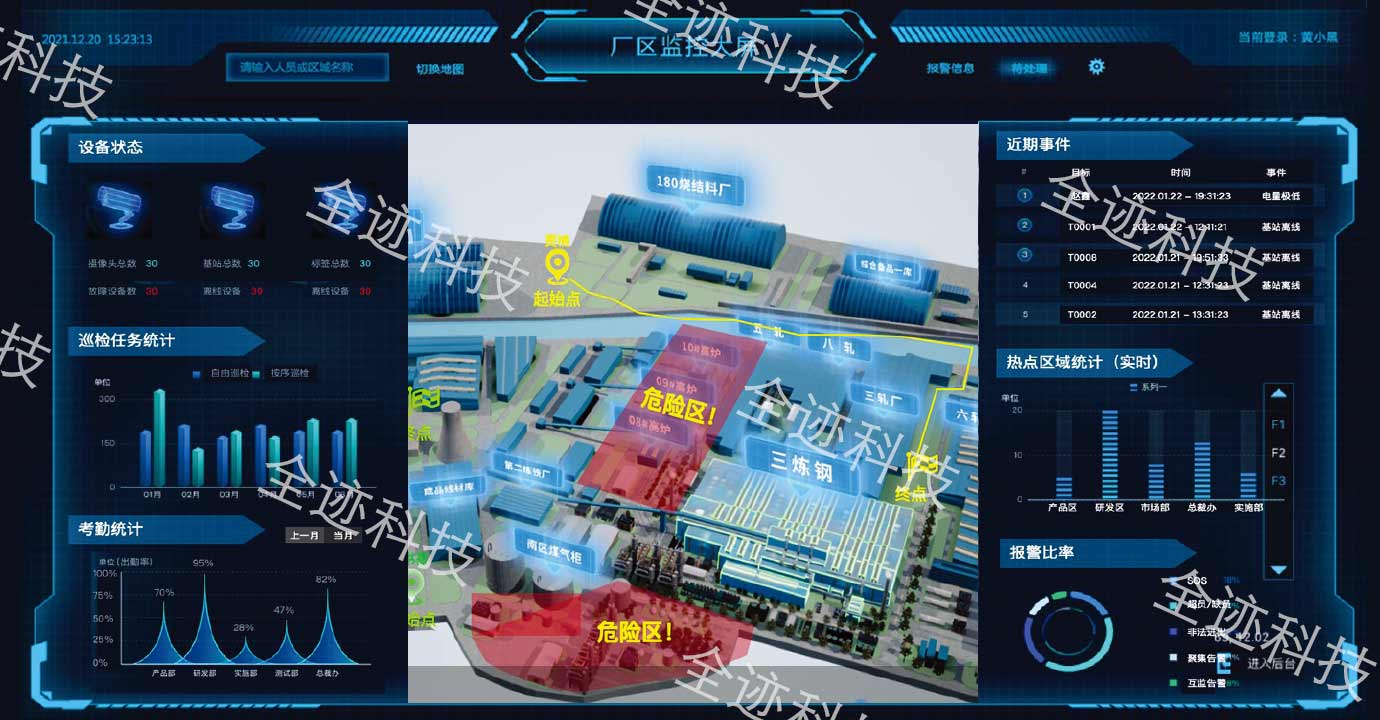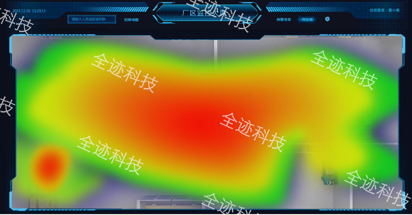 人員、車輛、各類物資分布實時監測并以熱力圖形式展現,物流通道是否擁堵、特定區域是否超員動態監控。